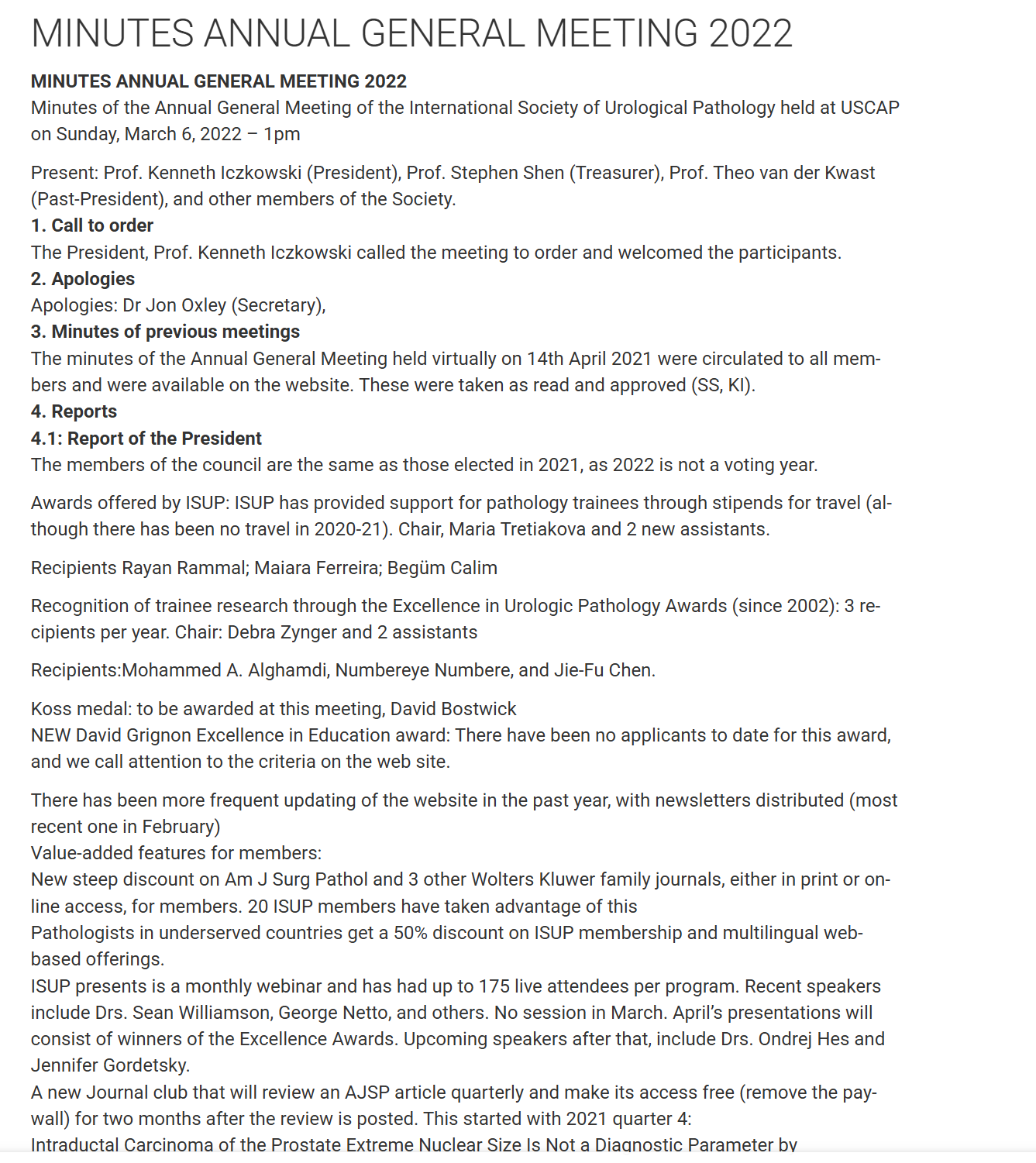 Minutes – Annual General Meeting 2022